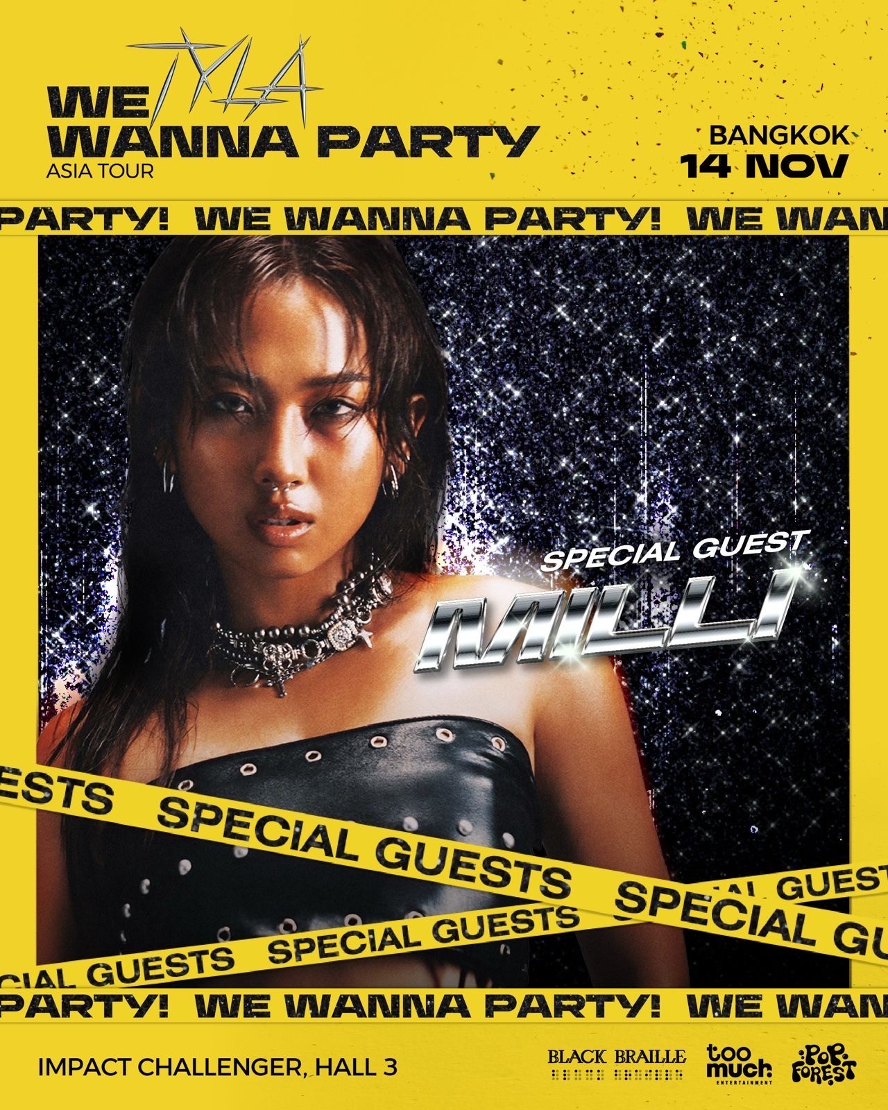 ความสำเร็จของอัลบั้ม Tyla ที่เต็มไปด้วยไวบ์ความบันเทิงที่แปลกใหม่ ทำให้ TYLA WE WANNA PARTY ASIA TOUR กลายเป็นอีกแลนด์มาร์คความสนุกที่คนทั่วโลกรอคอย และคราวนี้ TYLA WE WANNA PARTY ASIA TOUR in Bangkok ก็ได้เกิดขึ้น และจะเป็นปาร์ตี้ที่สมการรอคอยทุกคน การันตีว่าปาร์ตี้ครั้งนี้จะเสิร์ฟความประทับใจแบบเต็มอิ่มให้กับทุกคน