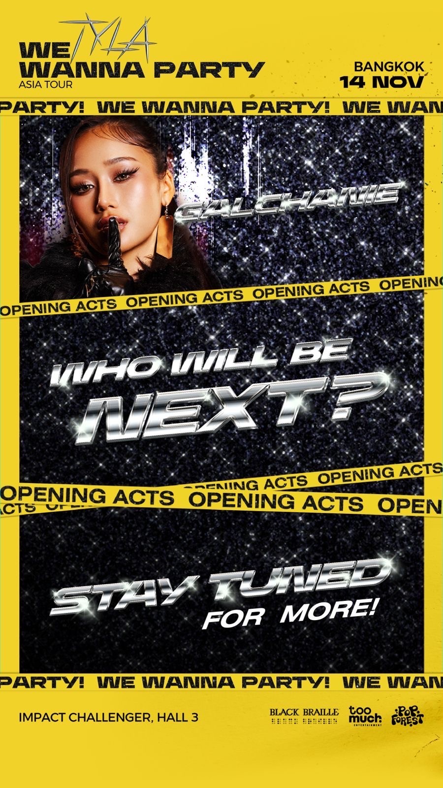 TYLA จะมาพร้อมกับศิลปินไทยตัวท็อปแห่งยุค ประเดิมความสนุกตั้งแต่นาทีแรกกับ GALCHANIE ไอคอนอาร์แอนด์บีรุ่นใหม่ ที่จะมาร่วมสร้างความมันไปพร้อมกับทุกคน และยังมีโชว์พิเศษของ TYLA กับ MILLI แร็ปเปอร์สาวแซ่บที่เคยร่วมงานกับหลายๆ ศิลปินระดับโลก รวมถึงอีกหนึ่งสเตจสุดฮอตของ TYLA กับอีกหนึ่งแขกรับเชิญดีกรีศิลปินไทยที่มีแฟนคลับทั่วทุกมุมโลกมาเซอร์ไพรส์ทุกคน ถือเป็นความสุขแบบ Exclusive ที่หาชมที่ไหนไม่ได้ นอกจากประเทศไทย และแว่วมาว่าอาจจะมีเพิ่มให้ได้กรี๊ดกันไม่มีหยุด
