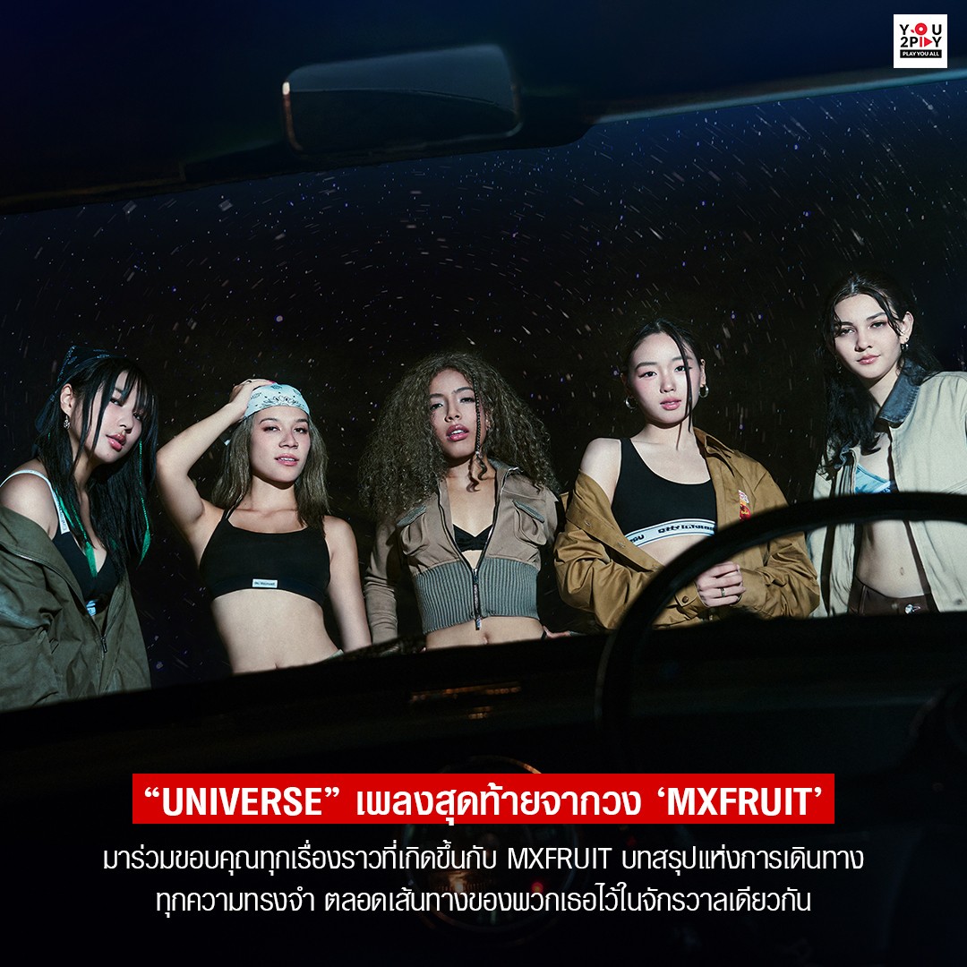 มาร่วมขอบคุณทุกเรื่องราวที่เกิดขึ้นกับ MXFRUIT ผ่านซิงเกิลสุดท้ายและอัลบั้มเต็ม UNIVERSE บทสรุปแห่งการเดินทางที่เก็บทุกก้าว ทุกความทรงจำ ตลอดเส้นทางของพวกเธอไว้ในจักรวาลเดียวกัน